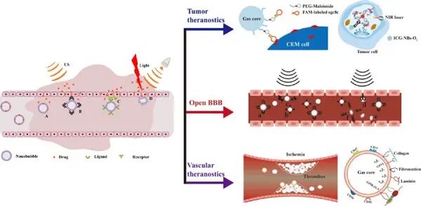 超声医学技术因其安全、快速、低成本等优点而被广泛应用。随着生物医学纳米技术的飞速发展,微纳气泡作为超声造影剂,不仅在超声影像诊断中具有重要价值,在药物递送中也展现出广阔的应用前景。与微气泡相比,纳米气泡 (NBs) 因具有更小的尺寸和更长的循环半衰期,在设计获得高效药物递送系统中具有优势。中国科学院顾宁院士团队总结概括了NBs的基本原理,包括分类、稳定机理和制备方法等。进一步地,对基于NBs的药物递送策略,包括直接递送、协同递送、靶向递送和刺激响应递送进行了系统的综述和讨论。重点介绍了基于NBs的药物递送系统在肿瘤诊治、脑部给药和血管疾病诊疗三个方面的主要应用。最后,讨论了基于NBs的药物递送系统面临的挑战和未来发展方向。