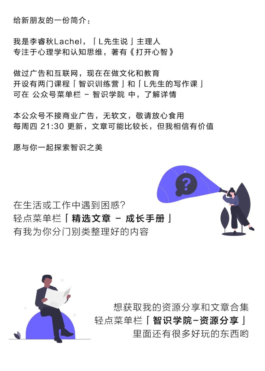 新书上市半个月了。这半个月来,每天都在紧张地跟读者答疑和交流。在答疑的过程中,我发现一件事:由于我对这些内容已经非常熟悉,所以在写作的时候,我总会无意识地、不自觉地略掉一些步骤,以为自己已经讲清楚了。但这些地方往往都被细心的读者找了出来,一针见血地问我:每每如此,令我非常汗颜,也让我深切地理解到一点:「知识的诅咒」真的十分强大,即使我们明知它的存在,也已经做了预判和规避,仍然无法完全避免它的影响。这里「知识的诅咒」不是指背景知识,而是指脑海中的想法。举个例子:比如「短期反馈」这个概念,我有时会拿它来指代「不劳而获的刺激奖赏」,取被动的含义;有时会用来指代「把大目标拆分成小目标」,取主动的含义。由于我脑海中有过这么一段构思,写的时候我可能就不会刻意去区分 —— 但读者并不知道我脑海中的这些想法,那么就很容易产生疑惑:同一个概念,为什么有时是正面的,有时是负面的呢?类似这样的问题,其实只需要多加一句解释,就可以讲清楚。但鉴于我对自己的思考过程非常熟悉,我可能压根就不会想到它需要解释。而这在不知不觉之中,就增加了读者的认知成本。我们总是容易推己及人。自己产生什么样的感受,就以为别人一定也有类似的感受;自己经历过什么样的思考,就以为别人也有同样的思考方式。但很容易忽略:别人是一个跟我们完全不同的人,有完全不同的经历和思维方式,面对同一个事物,不仅感受和想法可能不同,连理解也可能完全不同。![]()