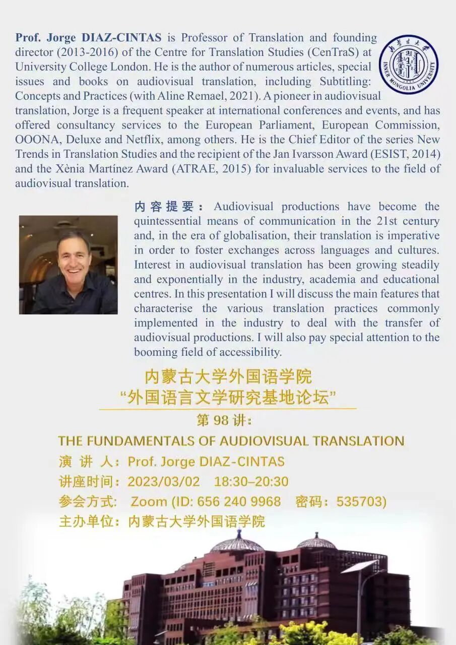 主 讲 人:Jorege Diaz-Cintas教授