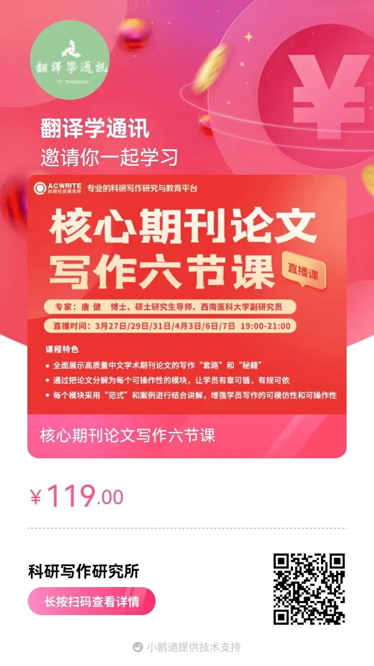 学术研修 | 3月27-4月6日直播. 核心期刊论文写作实用指南(入门级)