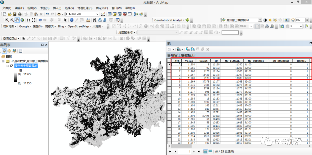 利用第一步链接好的data表的栅格数据作为下一步土壤数据属性的链接基础进行数据属性进一步提取。