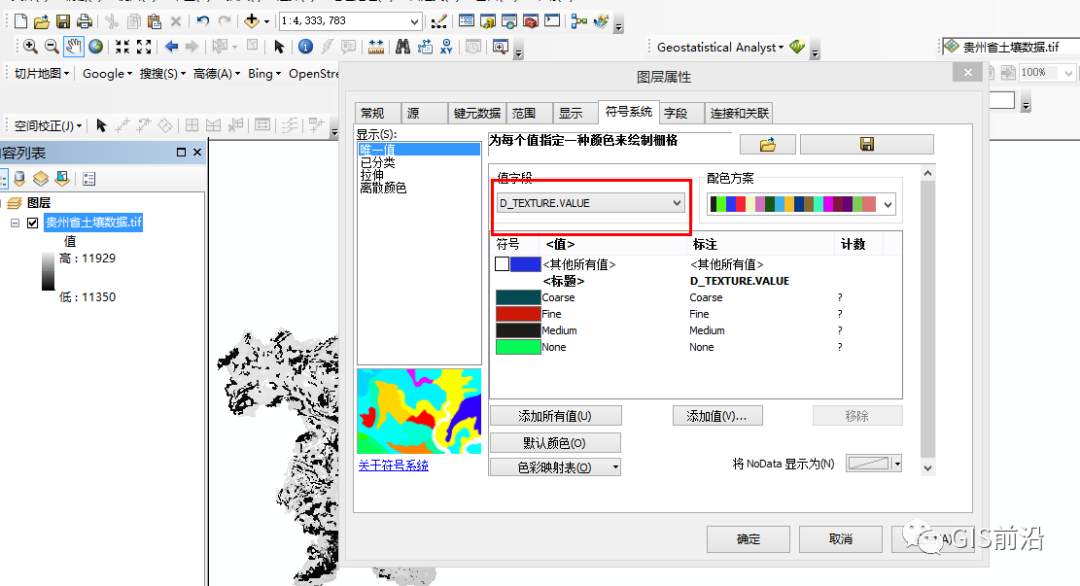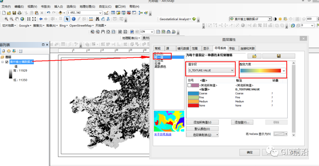 空间数据与栅格数据两者之间的属性传递主要依靠data数据属性作为桥梁。链接字段为栅格数据的VALUE与data表数据的ID字段。