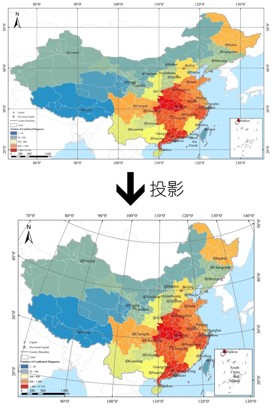 总结:当数据(无论矢量、栅格,如果是一张已出图的图像,这又是另一种情况,后续具体举例)没有坐标系又知道其正确坐标系时,用“定义投影”工具定义坐标系,当矢量数据需要转换坐标时,用“投影”工具,当栅格数据需要转换坐标时,用“栅格投影”工具。