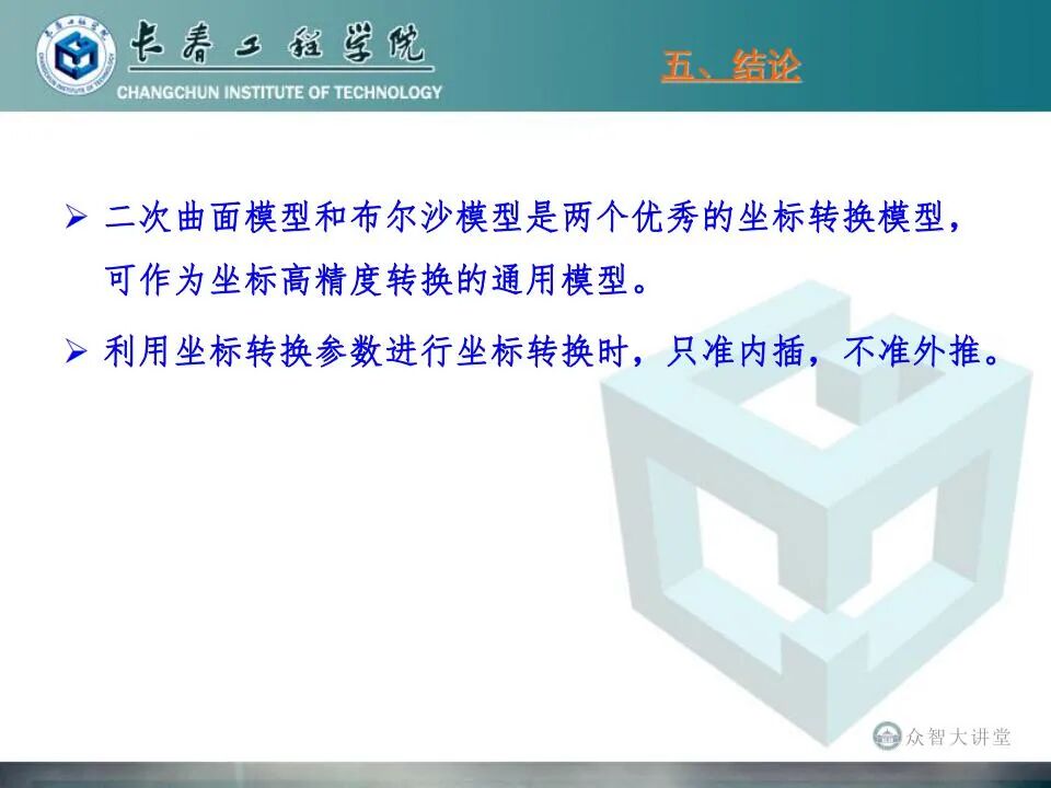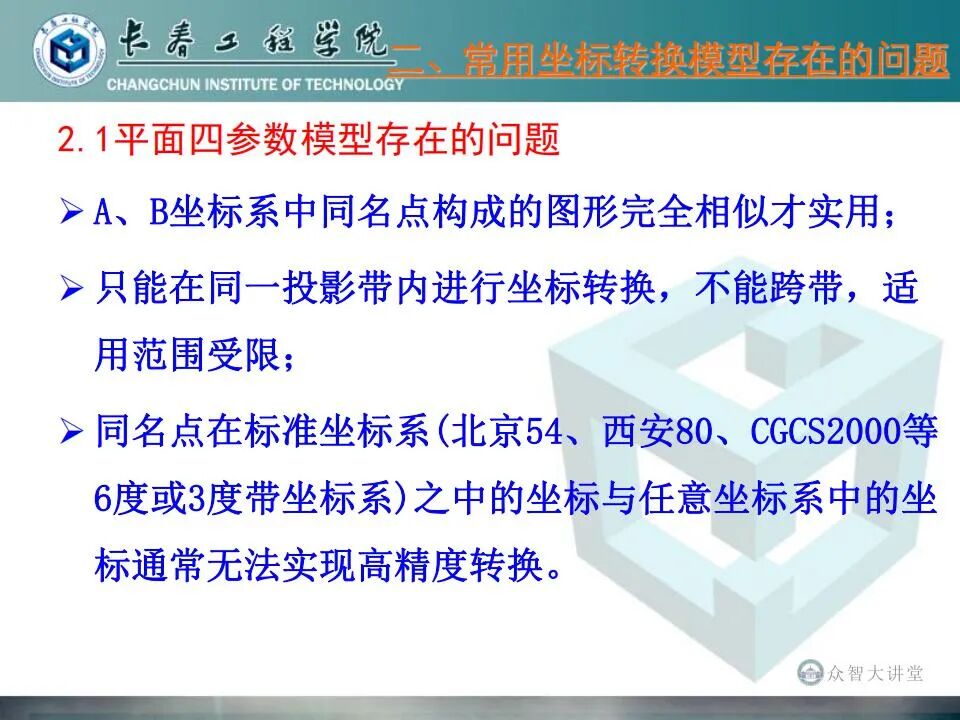 介绍坐标转换常用的方法,指出目前常用方法存在的问题,给出解决现存问题的途径,重点介绍布尔沙模型在大地高为0的三维坐标转换中的应用和二次曲面拟合法的应用,说明坐标转换中应注意的事项等。