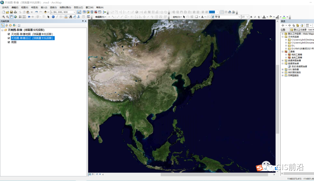 ArcGIS包信息文件(.pkinfo)下载后直接双击即可,ArcGIS打开后需要将影像地图图层换个位置。由于是天地图网站的切片图层,所以使用其他比较顺畅。ESRI的World Imagery之前有过分享,在ArcGIS中使用也比较简单,就是添加WMTS服务器。https://livingatlas.arcgis.com/wayback