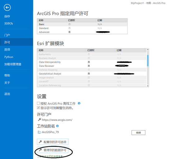 3.其他机器需要打开该数据,需要配置许可。在许可界面最下面的“管理您的数据许可”,如图3-22所示。