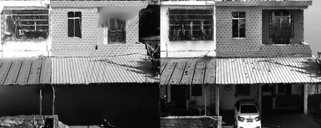 根据已经融合好的空三加密成果,利用重建大师软件构建TIN结构,对三角网进行优化;在倾斜影像和贴近影像中选择最佳的目标影像进行纹理映射与优化,构建精细三维模型时划分小区域瓦片,通过多节点集群系统并行处理,完成三维模型重建。需要注意的是,融合后点云密度和影像像素大幅度增加,建模时对集群服务器的运算能力和显卡都有很高要求,应适当减小分块避免建模失败情况发生。融合前后三维模型对比情况如图7所示。