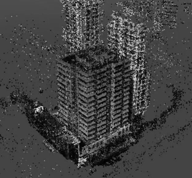 倾斜影像和贴近影像融合精细化建模的关键步骤是两者空三成果的融合,即空三加密点的融合拼接,空三加密点融合的质量直接影响到模型的精细程度。单一倾斜影像匹配点相对较稀疏,贴近影像匹配点较密集。在重建大师软件中将两者空三加密成果进行合并,点融合前后的具体情况见图5和图6。