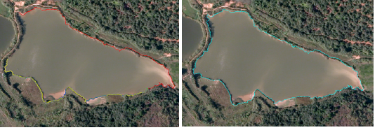 左图黄色线为新增吸附的边缘,右图为边缘吸附工具最终提取结果