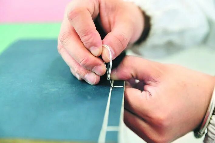 “古籍修复中有个重要的原则——‘整旧如旧,保护原貌’,所以在修复中要格外注意不能破坏古籍原有的样貌。”在经过一系列繁杂的工序之后,一页古籍中被蠹鱼咬过的破洞逐渐复原。随后,就是喷水压平、折页、下捻、装书皮、订书眼、订线等等修复步骤。