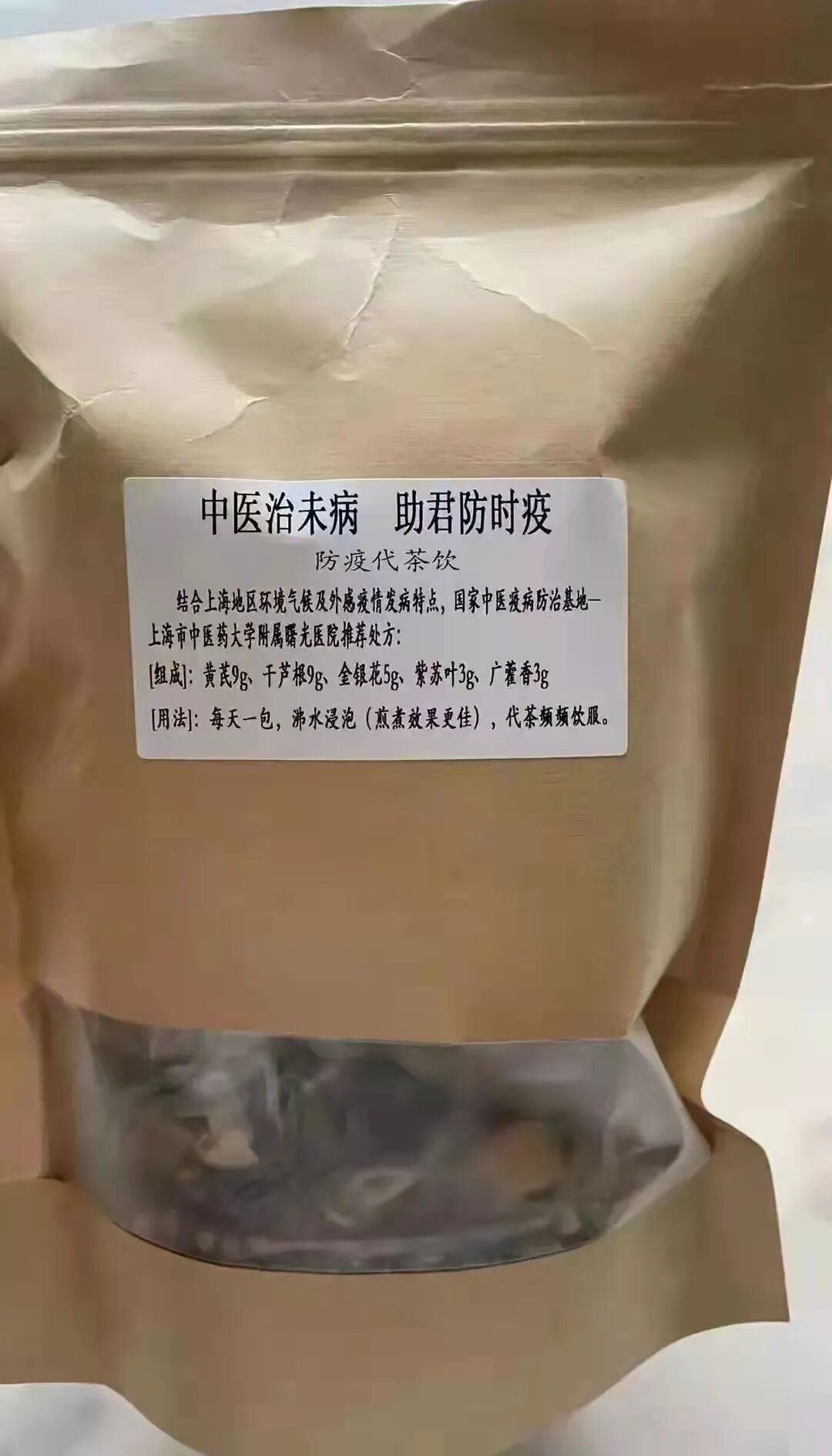 上海市民收到的防疫中药 图片来自网络