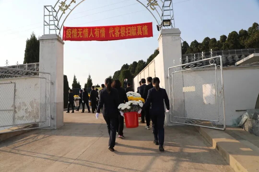 逐个在骨灰寄存架上插放鲜花,寄托哀思