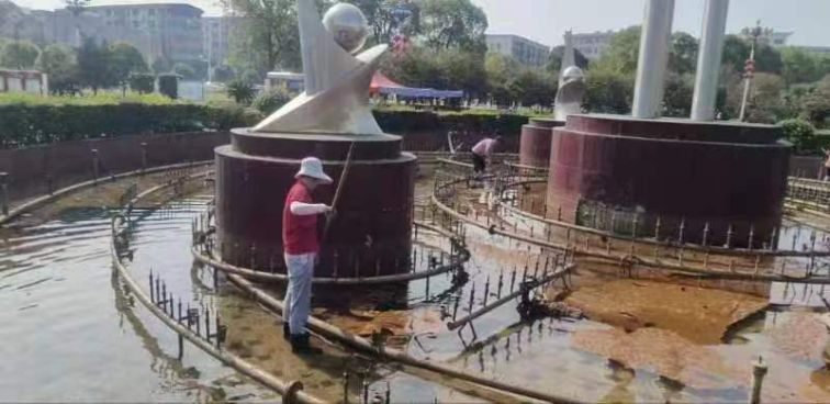 ▲清洗金川广场标志
