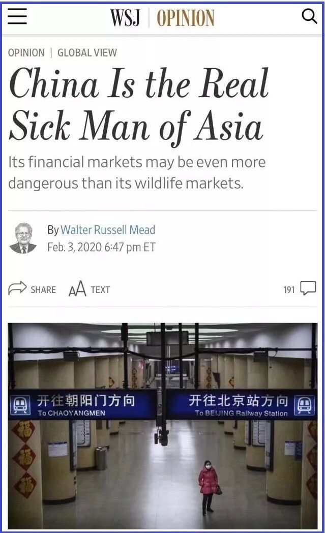 《华尔街日报》刊登的这篇文章诋毁中国政府和中国人民抗击疫情的努力,报社编辑还为该文章加上带有种族歧视色彩的耸人听闻的标题,既违背客观事实又违反职业道德,伤害了中国人民的感情,引起广大中国民众的愤慨和谴责。