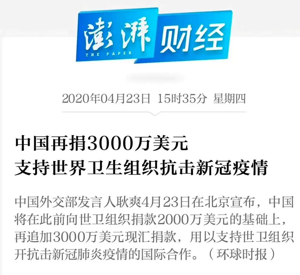 固然,来自国际社会的所谓索赔起诉等,未必真的能让中国付出实际的或直接的金钱损失,但间接的付出恐怕也是必须的。在今年疫情以来已经向世界卫生组织捐款2000万美元的情况下,仅仅一个月时间又宣布追加赠款3000万美元,恐怕也与此有关。