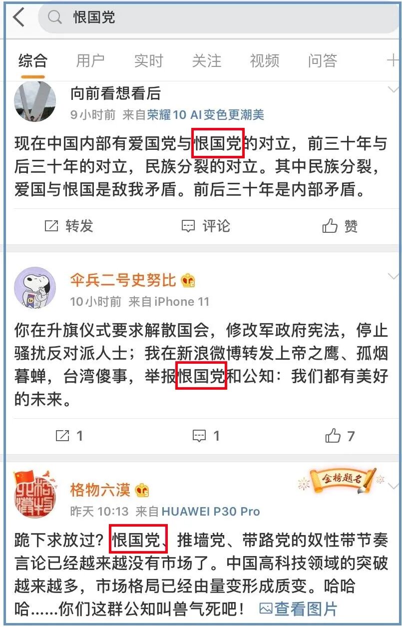 看见这标题,濠哥就决定研究一下这篇文章怎么 “带节奏”,为什么要 “带节奏”?中国老百姓恨自己的国家吗?既不会,也没有。因此,恨国党一词不准确。如果有恨,一定是恨社会不公和强权肆意。使用恨国党一词,是扭曲民众对权力任性的憎恨。
