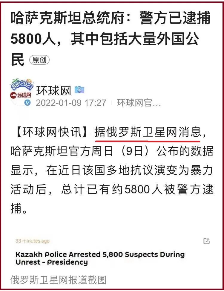 比如,哈萨克斯坦已经被俄罗斯搞定了,还在奢谈“中俄”;哈萨克斯坦总统在事件声明中丝毫没提什么革命,内地媒体还在空谈“颜色革命”。