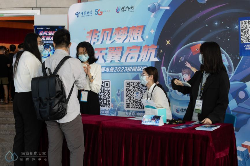 作为一名在南邮待了近7年的学生,我对电信很熟悉。非常感谢学校组织了今天的中国电信专场招聘会,在来到现场之前我做了充足的准备工作。在现场能明显感觉到同学们的热情,大家都很积极,现场氛围也很好,和这些公司也算是一种“双向奔赴”吧。我们学校一直与电信集团保持着良好的合作关系,学校也为电信集团输送了大量的优秀人才,我们也有很多知名校友在这些公司任职。希望大家也可以提前准备起来,结合学校的学科优势,充分展示自己的优点,祝愿大家早日拿到心动的offer!