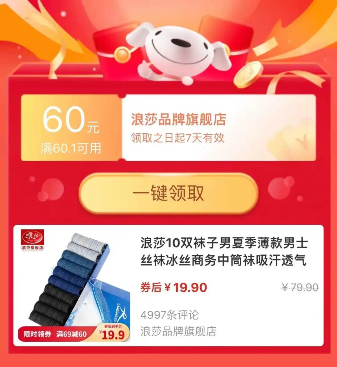 浪莎旗舰店,男士夏季薄款透气丝袜 混色10双,原价79.9,领券后实付19.9。