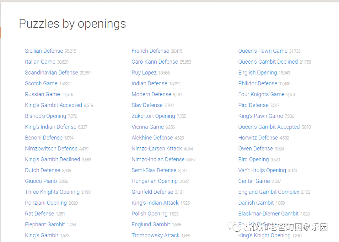 You can now filter Lichess puzzles by opening现在你可以针对各个开局,有选择性地刷题了: