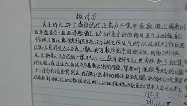 然后就是写检讨、保证书,当着全班忏悔。