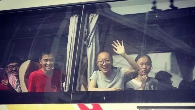 奔赴考场的毛坦厂学子们,坐在大巴上和送考的父母挥手告别