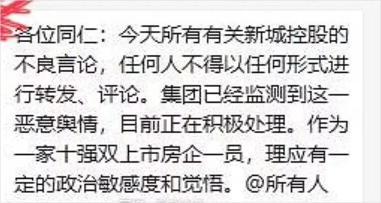 得以喘息的新城控股内部似乎也开始了新一轮公关处理。