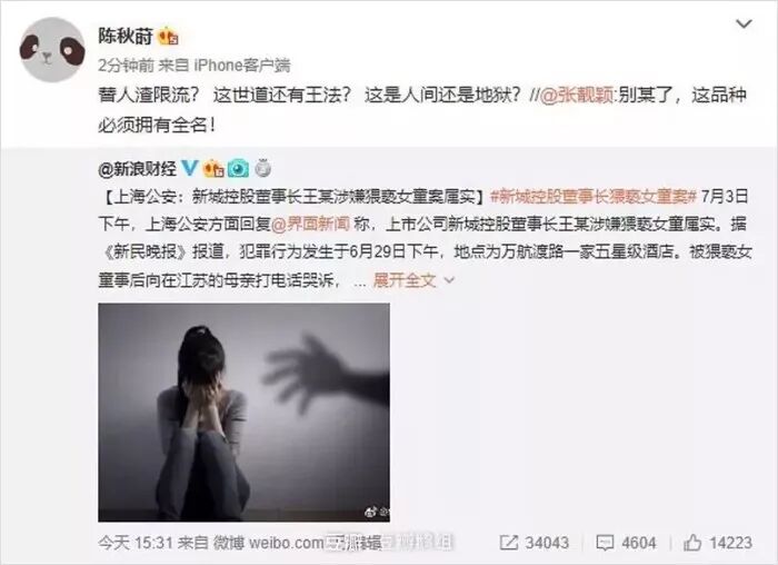 昨天又一件恶性事件发生,新城控股董事长王振华因猥亵9岁女童被采取强制措施。