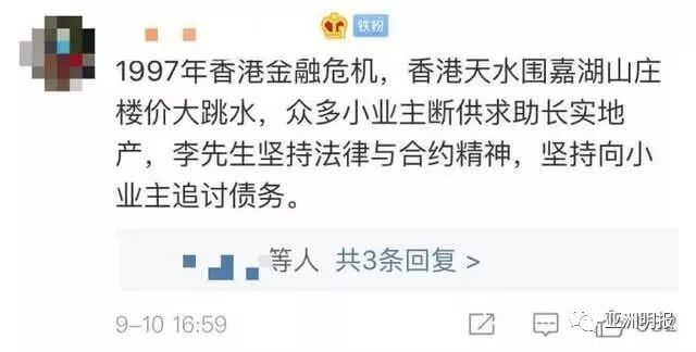 李嘉诚的言论引起争议,有网友直言,“香港金融危机时怎么不见你给还不起房款的市民网开一面?”