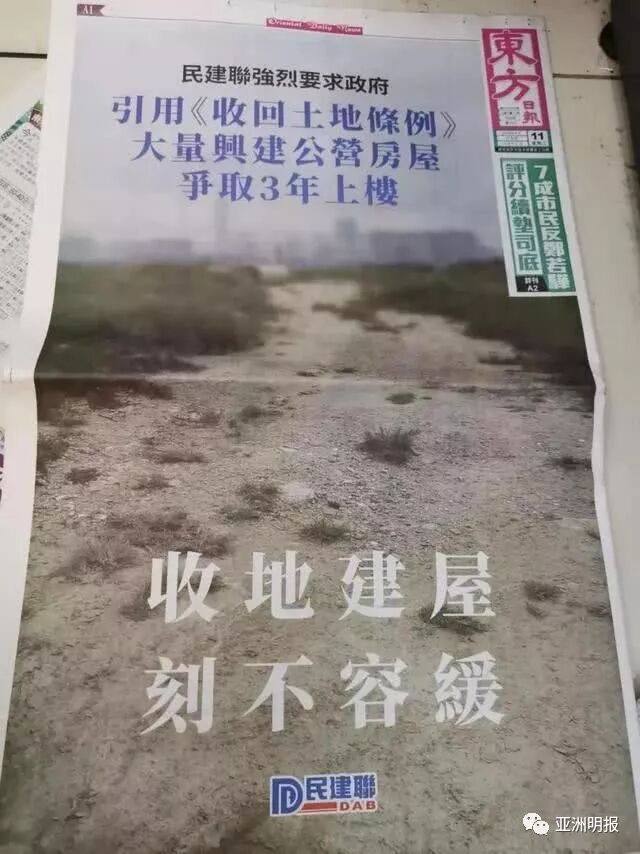 就在9月11日,香港民建联在报刊登全版广告,促请政府引用《收回土地条例》增加土地供应,大量兴建公营房屋,缩短公屋轮候时间,争取达到“3年上楼”的目标。这一倡议引起很大关注。
