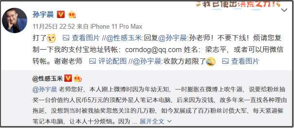 丧心病狂的孙宇晨感觉报复对方的机会来了,又发微博,表示将替他还债,成功蹭了一波热点。