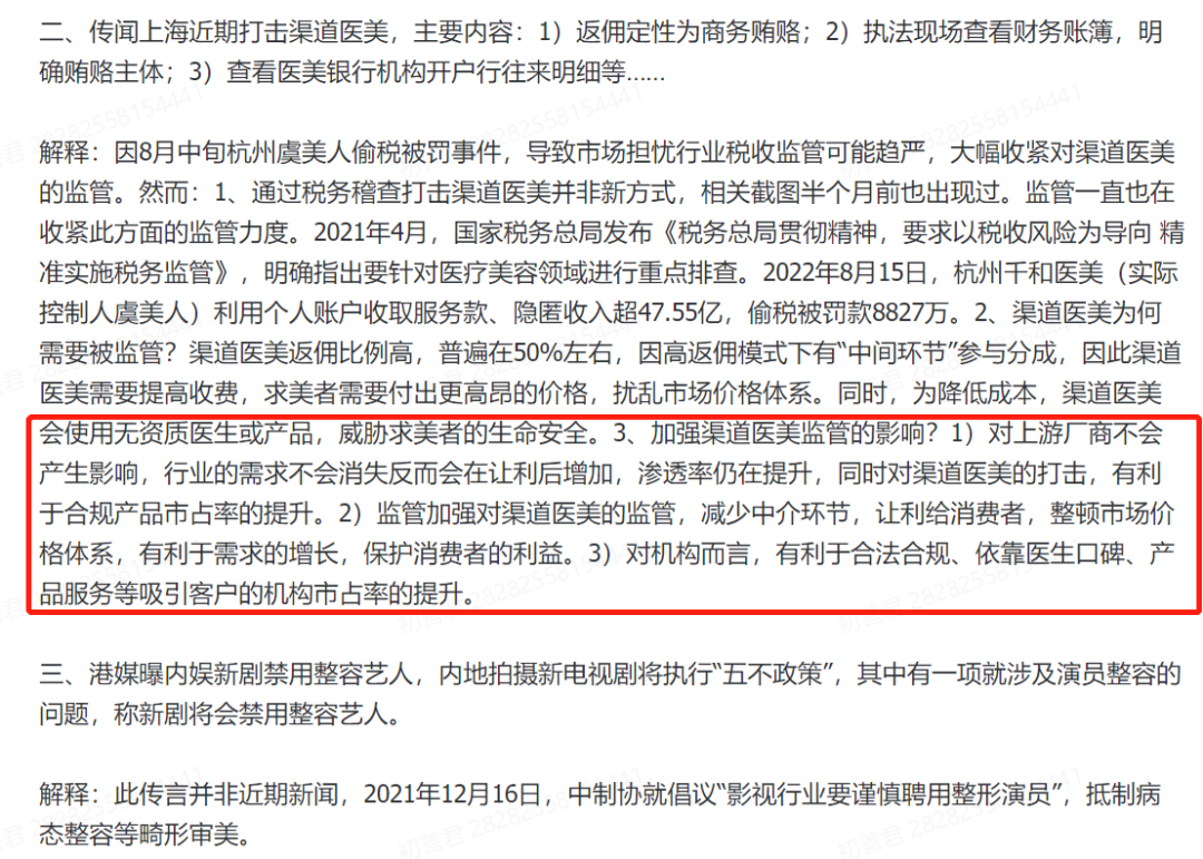 早上微信群就在传下面这个小作文,说上海在查医美的财务问题,一千多亿的爱美客开始下跌,盘中一度跌了13%,华熙生物更是大跌14%。