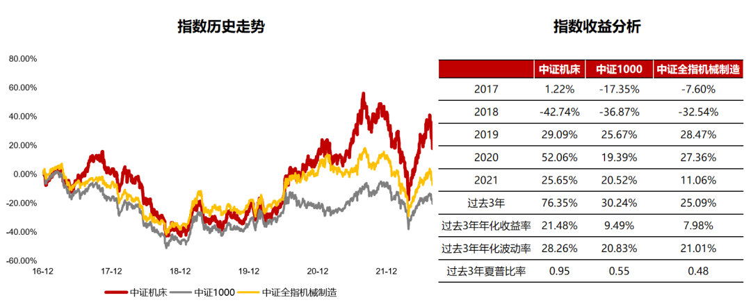 机床ETF(159663)是指数基金,指数基金我这里就不多介绍了。机床ETF追踪中证机床指数,这个指数并非新指数,是中证指数有限公司于2022年5月9日发布。虽然是新指数,但是我们可以追溯过去五年的收益率情况,中证机床指数过去三年累计收益率达到76.35%,过去三年年化收益率为21.48%,远超同期中证1000指数的9.49%及中证全指机械制造指数的7.98%。