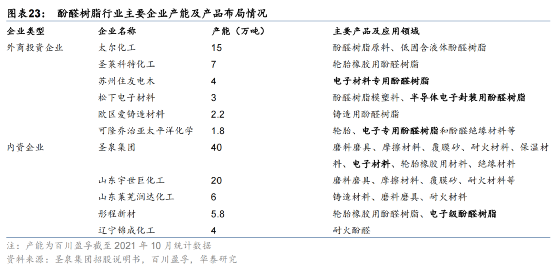 从竞争来看,酚醛树脂上市公司主要是圣泉集团和彤程新材,产能分别为40万吨和5.8万吨,圣泉集团产能遥遥领先。不过外资企业都是在国内建厂,产能替代需要观察。