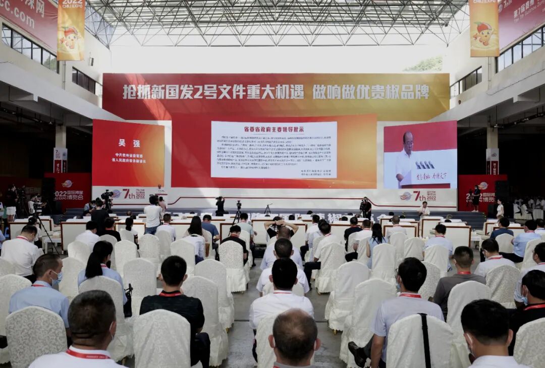 吴强指出,我们深入学习贯彻习近平总书记视察贵州重要讲话精神,以举办“辣博会”为契机,推动辣椒产业转型发展、打造“辣椒强省”,初步走出了一条贵州辣椒产业高质量发展的新路。七年精耕细作,产业规模明显扩大;七年转型发展,产业基础愈发夯实;七年持续打造,品牌影响显著增强;七年大力建设,市场体系逐步健全;七年引领带动,增收机制不断稳固。贵州辣椒产业将乘着新国发2号文件的东风,把握新机遇,整装再出发,坚持突出特色推动辣椒全产业链融合发展;坚持绿色发展筑牢生态贵椒品质特性;坚持项目为王增强产业发展后劲;坚持有效市场和有为政府更好结合。“辣博会”是我们重点打造的辣椒产业展示、交流、合作的重要平台,是我们开展招商引资、招商引智的重要载体,希望各方以“辣博会”为契机,建立多层次的辣椒文化交流合作机制,共同推动贵州辣椒产业取得更大发展。