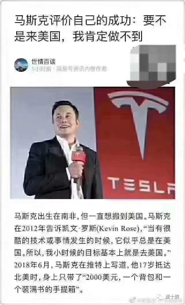 那么,怎样才能成为马斯克呢?一看马斯克爆了,公知们马上断章取义,发出了马斯克的一段话:要是不来美国,我肯定做不到。(如下图)好像中国人科技落后,百分百是环境的错喽。