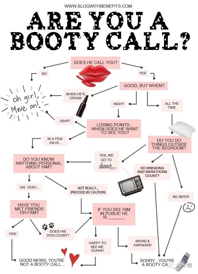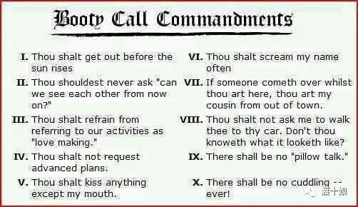 Booty call差不多是friends with benefits,可是还不如,因为可以连朋友都不算,只是炮友。平时可以完全没有交流,只是有需要的时候来约。