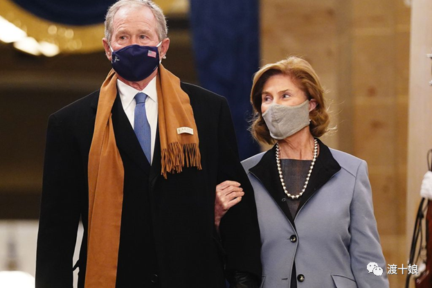 劳拉布什浅蓝色,领子可以敞开可以扣起来,冬天里挺实用。整体也是非常得体,平底鞋,也是舒服为主了。珍珠项链的长度似乎稍微长了些,不过这个最多就是不够时髦,也没有错。布什做总统的时候我完全没有注意过第一夫人。看来低调也有低调的好,让人省下时间做别的。