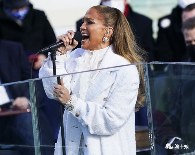今天上台表演还有JLo,今天一身白色,头发全部挽在后面,在她,算是非常保守的打扮,合时宜。白色大衣好看,可是也只有她可以穿好看,里面是白色蕾丝衬衫,白裤子。以她的年纪,状态一流。