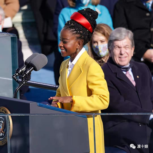 最后要说的是今天上台念诗的女孩子,Amanda Gorman,才22岁已经是小有名气的诗人,现在哈佛大学读书。黄色大衣配红色头饰,年轻鲜亮!话说这个黄色绝对是今年的流行色。对这件黄色大衣我小小种个草。除了完美笑容,人家最厉害的当然还是写的诗。附在下面,千万不要错过。