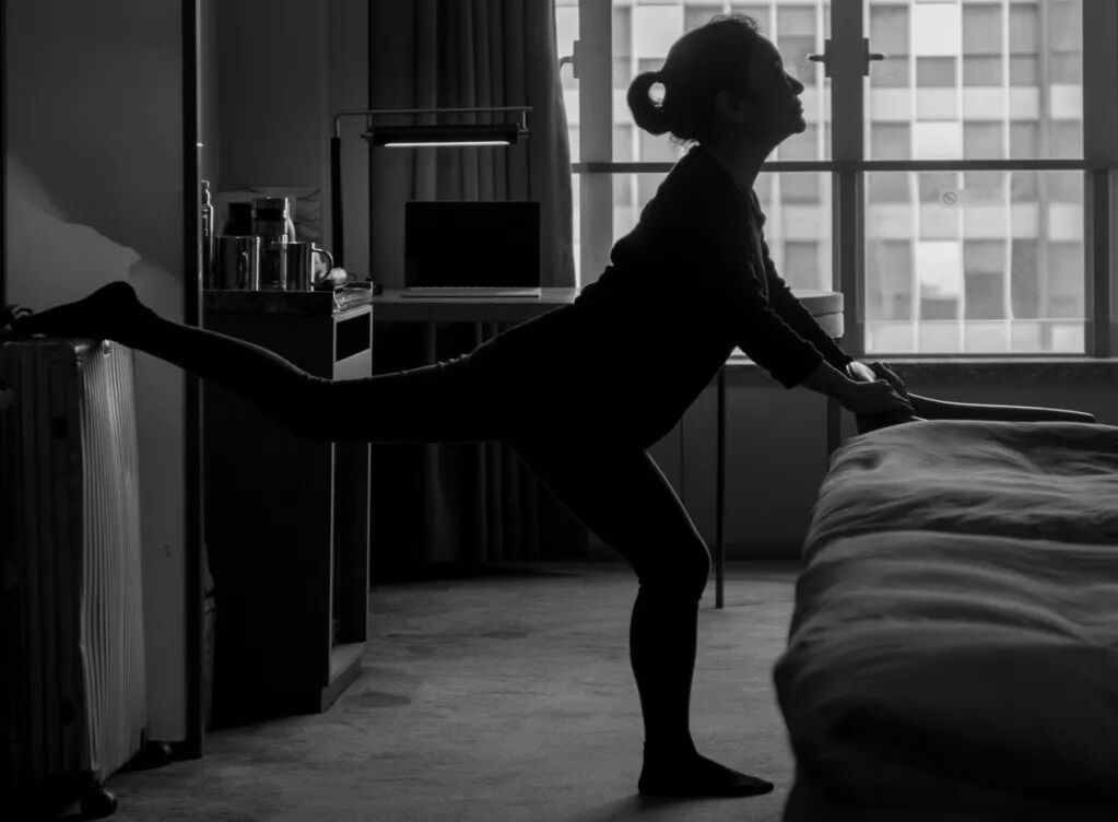 适者生存似乎是每个人的潜在本能。听惯了建筑工地的喧嚣,看惯了斑马线上背影,不知道是一种麻木还是一种无奈,我渐渐地接受了这个房间,接受了这种环境。既然选择隔离,就无法享受天空的高远与大地的辽阔,再逼仄的空间也要坚持。坐在电脑前,先安静自己,回到自己的作品中去。那种自我注视和自我满足,不觉就是一天。间中,也会手扶著床,把脚搭在箱子上压压腿。喜欢摆弄相机的先生,在司空见惯、平平无奇的场景中,碰撞出新的想象力。抓拍了一个又一个画面,留下一段难忘的回忆。04