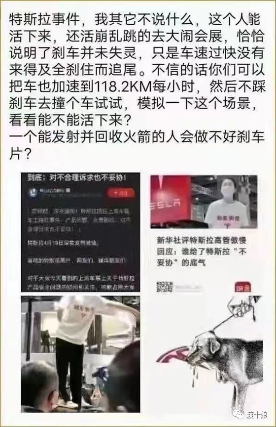 常在河边走,哪能不湿脚。说的不是特斯拉,是XYZ#*&$人等。作为一个特斯拉车主+特斯拉迷你股东,我开了X之后又买了M3。两辆车都是美国原产,质量如何,一句话:开完不想换别的。尤其是你习惯了长途的(辅助)自动驾驶,你是很难舍得这个超级好的功能的。其实我最初被特斯拉销售吸引的也无非就是两点:一是免费的上海牌照(我的车是从北京开回来的,一直在上海限时上高架)二是自动驾驶。在中国其实自动驾驶用得比较少。到美国以后几乎只要开车就是自动驾驶。而且软件不断更新后,变道功能,自动刹车功能等都是非常好用的。我这里比较少堵车,今天出来玩堵车我试了一下低速自动启动(过去这个要开到40公里/小时才可以启动辅助驾驶),结果发现这功能太好了。因为你可以在那里睡觉。前面的车只要一移动你就可以往前走了。超爽。我开始并不信任自动驾驶,每次超车的时候都会踩完刹车接管。用多了,发现电脑比人脑好。变道也是。人眼有盲点,还有人算速度不准,容易引发危险。但特斯拉的变道非常智能。所以这辅助功能绝对是帮助你更加安全驾驶的。电子眼也不会睡觉,时刻注视着周围的路况,会提醒会紧急制动,都是救命的。车顶女是不是卧底我们不知道,但根据提供的各类情况包括数据表明,其在118公里/每小时的车况下,如果刹车失灵了会怎样?还记得那个奔驰司机么?刹车失灵然后一路高速狂奔?最后自己逼停了?(不知道后续奔驰如何解决的?)也就是如果当时按照在高速上狂飙(不要说118,就算88撞上去也粉身碎骨了)的状况,刹车失灵而撞到障碍物,初中物理会告诉你:要么特斯拉性能实在太好,撞不坏;要么就是特斯拉制动系统太好,计算准确没有伤人。两种情况都说明:特斯拉是好车。前年我发过一条朋友圈, 称有个小男生倒车撞了我的车,结果挪开后发现他自己瘪进去一大块,特斯拉几乎看不出损害。连漆都没怎么擦破。所以比起日本车动不动瘪进去一块,特斯拉还是经撞的。为什么特斯拉?阴谋论很多。我就不说啥了。但至少,一个品牌到底好不好,消费者最有说明权。中国式“政治正确”并不一贯能帮到人,说不定还帮倒忙。平时口口声声“我强大”的某些特斯拉车主们,一听我说最好让特斯拉“滚出中国”就着急了。But!Wait a minute!不就是你等要国外品牌尤其知名品牌一个个滚蛋的么?!如您所愿啦,为啥又着急了呢?可见你比我们更清楚孰是孰非。拥有一万股特斯拉是我的梦想虽然遥不可及,但也可能他一分再分呢。上一次是一拆五,说不定下一次就一拆十了。一万八千辆,还不至于让特斯拉掉到谷底吧 我支持特斯拉早点撤出中国。给国产品牌腾位置——假如你们认为这样更强大的话。