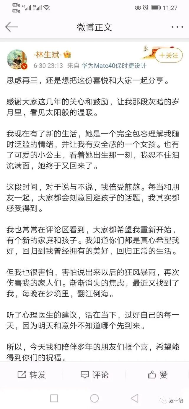 事情有意思的是,我一直以为林生斌从来没有公开过他结婚的事情,但其实当我写完这篇文章去搜索照片的时候,发现早在今年三月(也许更早)已经报道了他结婚了。而让人唏嘘的是,就在我想他会用什么样的语言来怼回那些脏言污语的时候,他也只是用短短数百字表达了一切。