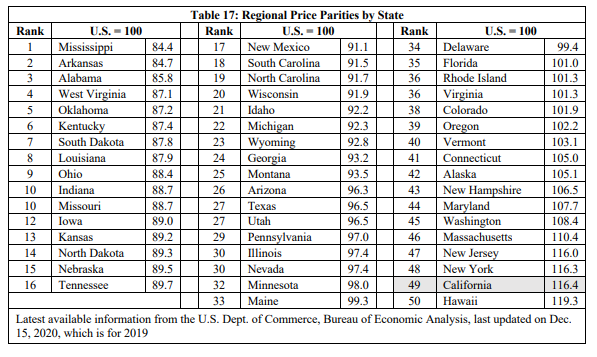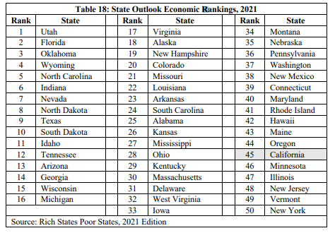 公司的经济自由(不是个人经济自由),加州排名47,和垫底也没什么差别了。这次纽约州垫底。