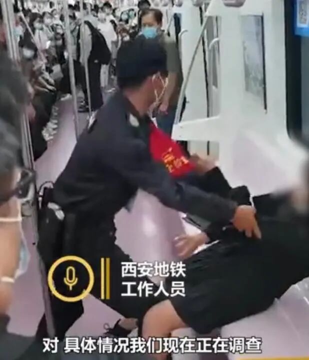 无独有偶,在西安的地铁里,拥有更大权力的“小保安”上演了一场惊天动地的“野蛮执法”。不知道他哪里来的勇气和力气,竟然可以把一个跟他个头差不多只不过是女性的乘客一而再再而三拖出了地铁车厢。导致女乘客衣不遮体,裸露在光天化日之下……