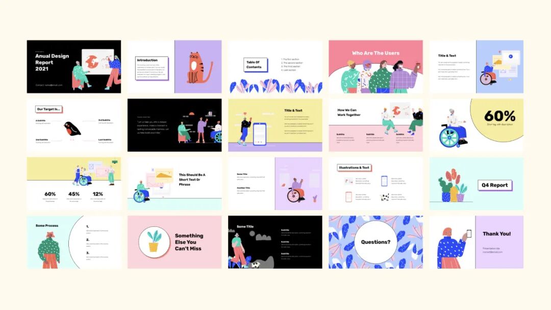 另外也有越来越多的设计师开始用 Figma 的原型功能直接做 PPT 了,顺应这个趋势他们还提供同系列的 ppt 模板,一键套娃。