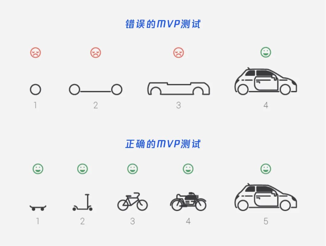 在MVP原型测试过程中,特别值得关注的是不应该将完整成品拆分出零碎的模块,需要保证MVP是最小的可以被运行的单位。