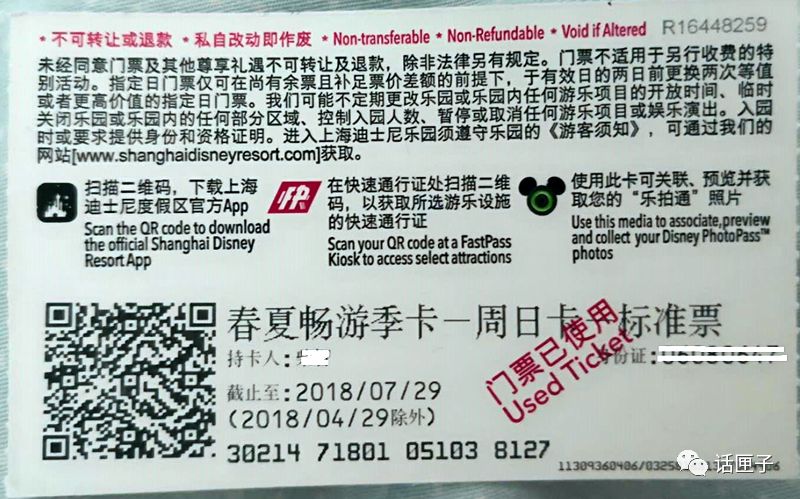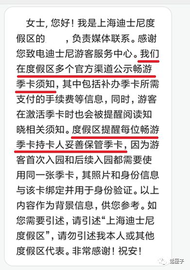2、“度假区提醒每位畅游季卡持卡人妥善保管季卡”