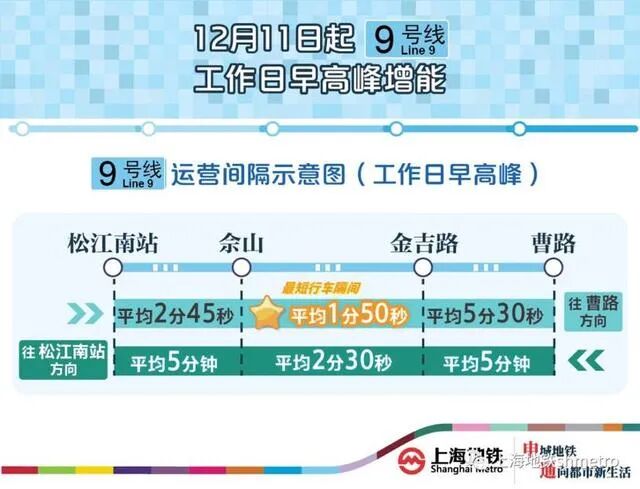 1分50秒!这是本月11日以来,上海地铁9号线的最短行车间隔。这不仅在上海地铁中是最短的,在目前中国内地的地铁中,都是最短的了。