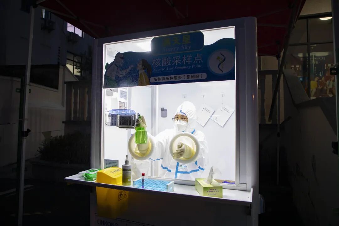 奉贤区提出整合区内医疗机构、社区卫生服务中心、生活驿站、村卫生室等资源,构建由区、镇、村居三级“满天星”核酸采样点组成的网络,设置固定采样点位100个左右。这些天,首批31个“满天星”采样点已经投入使用。